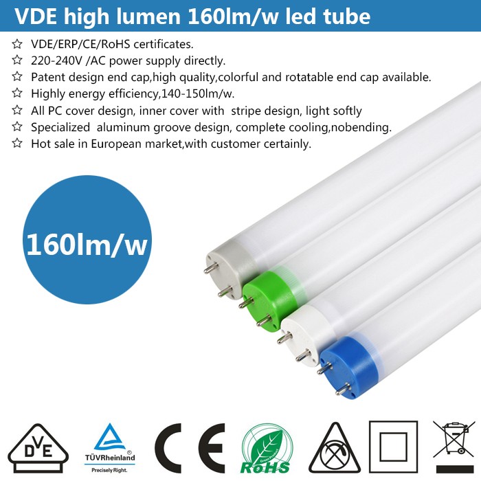 Advantages of VDE ALL PC T8 led tube 160lm/w
