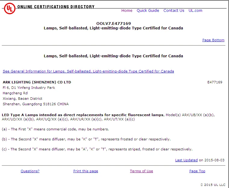 Certifications of ARK lighting 180lm/w 10w glass led tube UL DLC listed led tube